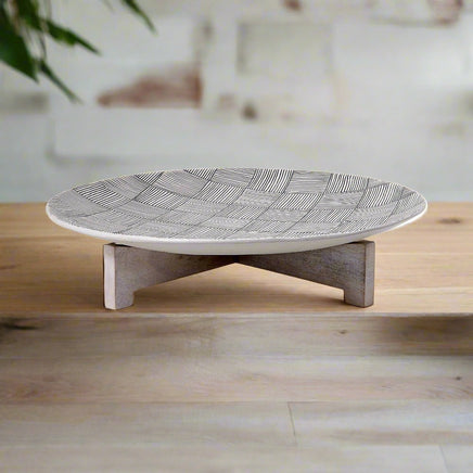 Uplift the atmosphere with this elevated serving platter, handsomely designed in Ecomix, and mangowood. This platter will add a polished element to your entertaining options.